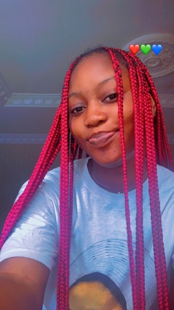 | Haare: | dunkelbraun, rückenlang, Afro |