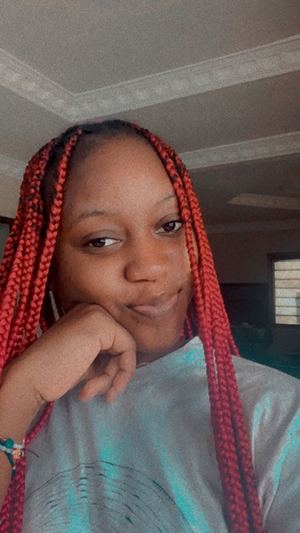 | Haare: | dunkelbraun, rückenlang, Afro |