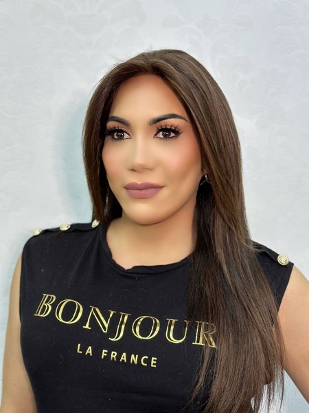 | Haare: | dunkelbraun, rückenlang, wellig |